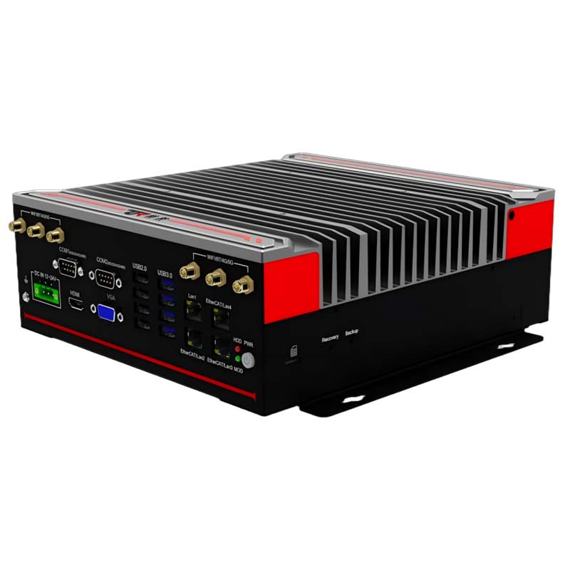 高性能 : 支持65W及以下6/7/8/9 代LGA1151 Intel Core i7/i5/i3 系列處理器 穩定可靠 : 純工業設計,強勁解熱熱管與純銅一體化的優良散熱結構,全密封鋁合金箱體,大面積鋁鰭散熱,可實現橫向與豎向等多種放置的自然對流散熱,機箱可抗接觸式6KV強電磁干擾,DC12V-24V寬壓輸入接口豐富 : 4*LAN(Intel),6*COM,支持T-MOD模塊擴展,8*GPIO(4*USB2.0/2*RJ45/2*CAN/12DI+12DO三選一擴展),4*USB3.0+4*USB2.0 1*VGA,1*HDMI,1*DP,1*遠程開關,1*一鍵還原,1*一鍵備份,1*SIM槽, 1*LINE IN,1*LINE OUT,1*MIC,1*2.5寸硬盤位,1*M.2(KEY-M,2280,PCIEx4支持SATA) , 1*M.2( KEY-B,3042/3052, PCIE+USB3.0支 持 4G/5G) , 1*MINI PCIE( 全 高 ,PCIE+USB2.0信號,支持WiFi/BT)外觀設計 : 鋁合金一體成型,結構緊湊,MiNi小巧,工藝精細,科技時尚